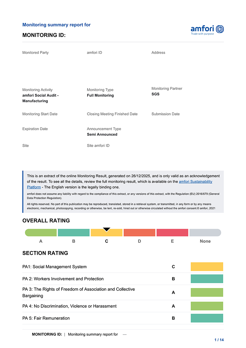 · 仅限BSCI认可的国际第三方公证行(如SGS、BV、TÜV等)