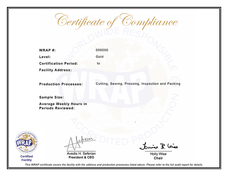 自2026年3月1日起,通过WRAP验厂后,获得的证书将不再区分等级,证书上将不再显示等级,只显示证书有效期;如验厂不通过,则不予发放证书。
