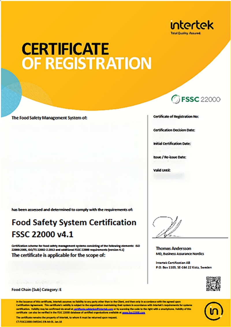 FSSC 22000的最终目的是完善食品安全标准,重拾消费者对食品安全供应的信心。这将造利整个行业。