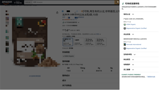 方法二:获得一项或多项第三方可持续性认证 获得亚马逊认可的57项环保认证中的一项或多项。卖家可以寻找专业合规机构完成认证,无需卖家手动操作,机构将认证结果同步到亚马逊,“绿标”在3~5天内显示在前台页面。 |