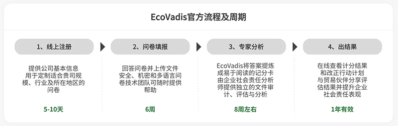 7天填报,10周出分,热情服务,节省时间,高效拿证,证链通,EcoVadis合规路上最值信任的伙伴!