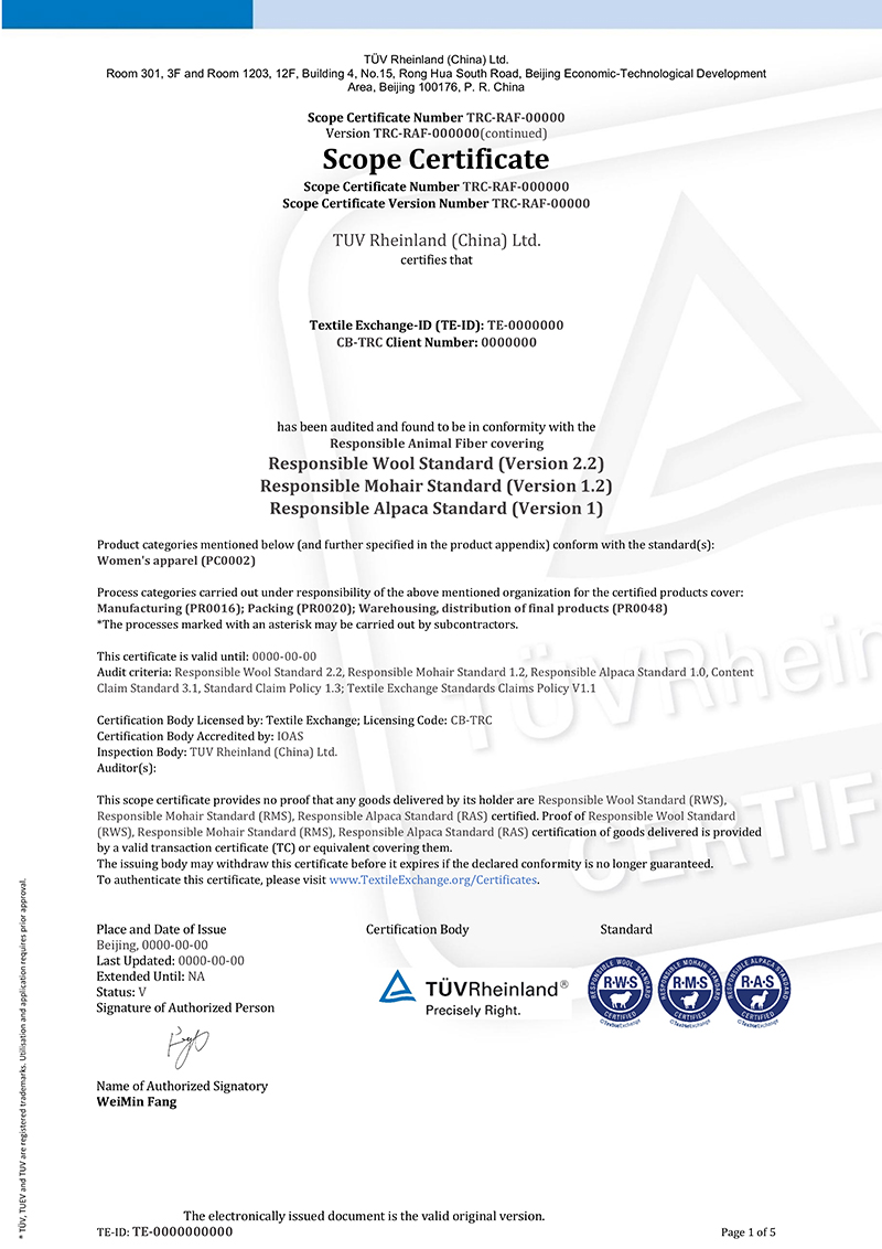 负责任的羊驼标准(RAS)是由纺织交易所(Textile Exchange)制定的全球性认证体系,旨在确保羊驼养殖和纤维生产符合动物福利、土地管理和可持续实践的要求。该认证覆盖从农场到成品的全产业链,适用于羊驼毛、纱线、面料及最终产品。